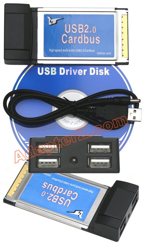 - PCMCIA CardBus Card with 4 USB2.0 ports